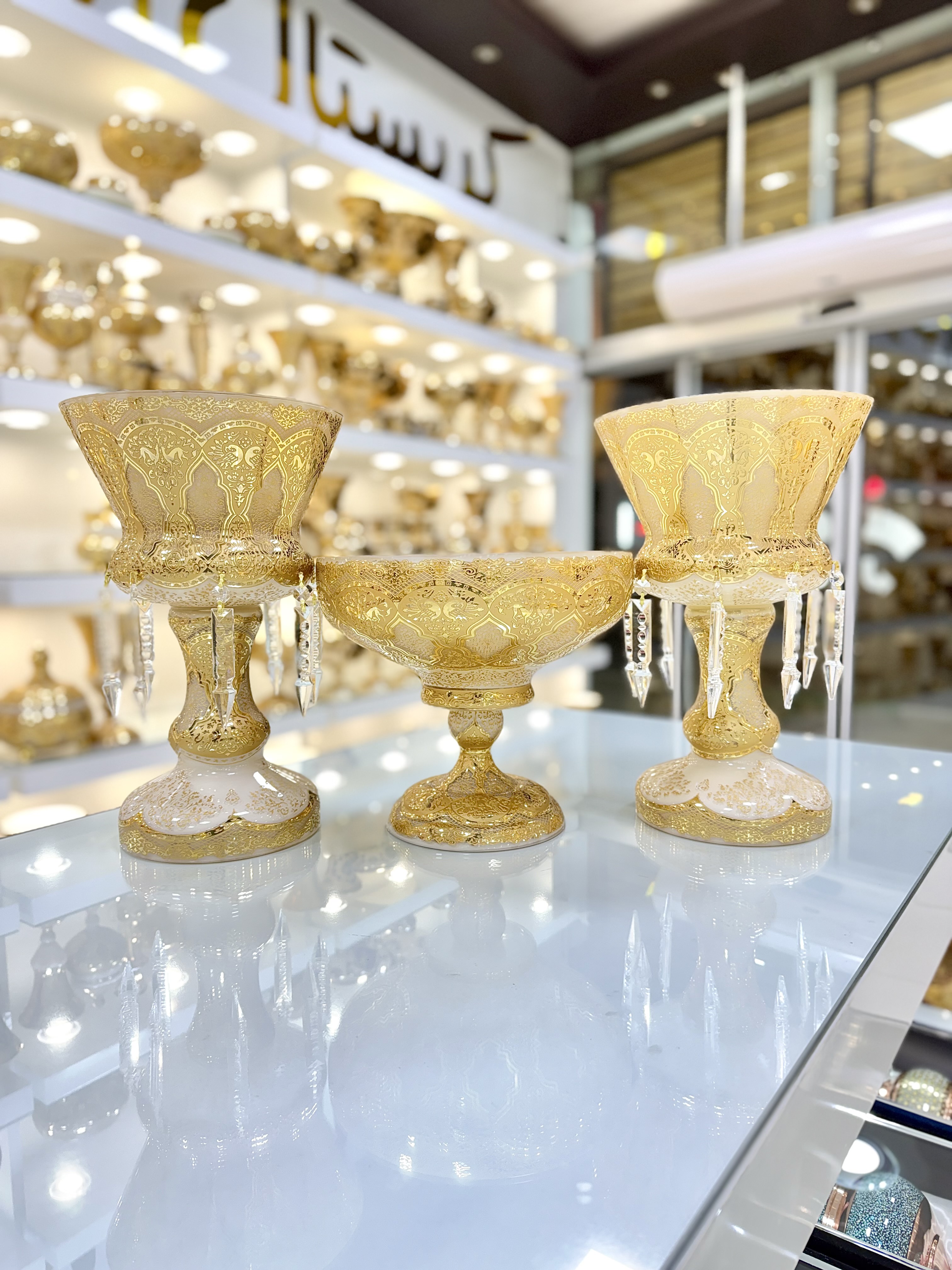 این طرح با رنگ کرم آرام و درخشش طلاکوب خود، ترکیبی از اصالت، لطافت و شکوه را به وجود آورده است. از گلدانها، شکلاتخوریها، شمعدانها و ستهای دکوری ژاکلین گرفته تا سرویسهای کامل پذیرایی، هر محصول یادآور هنر ناب و دقتی بینظیر است.