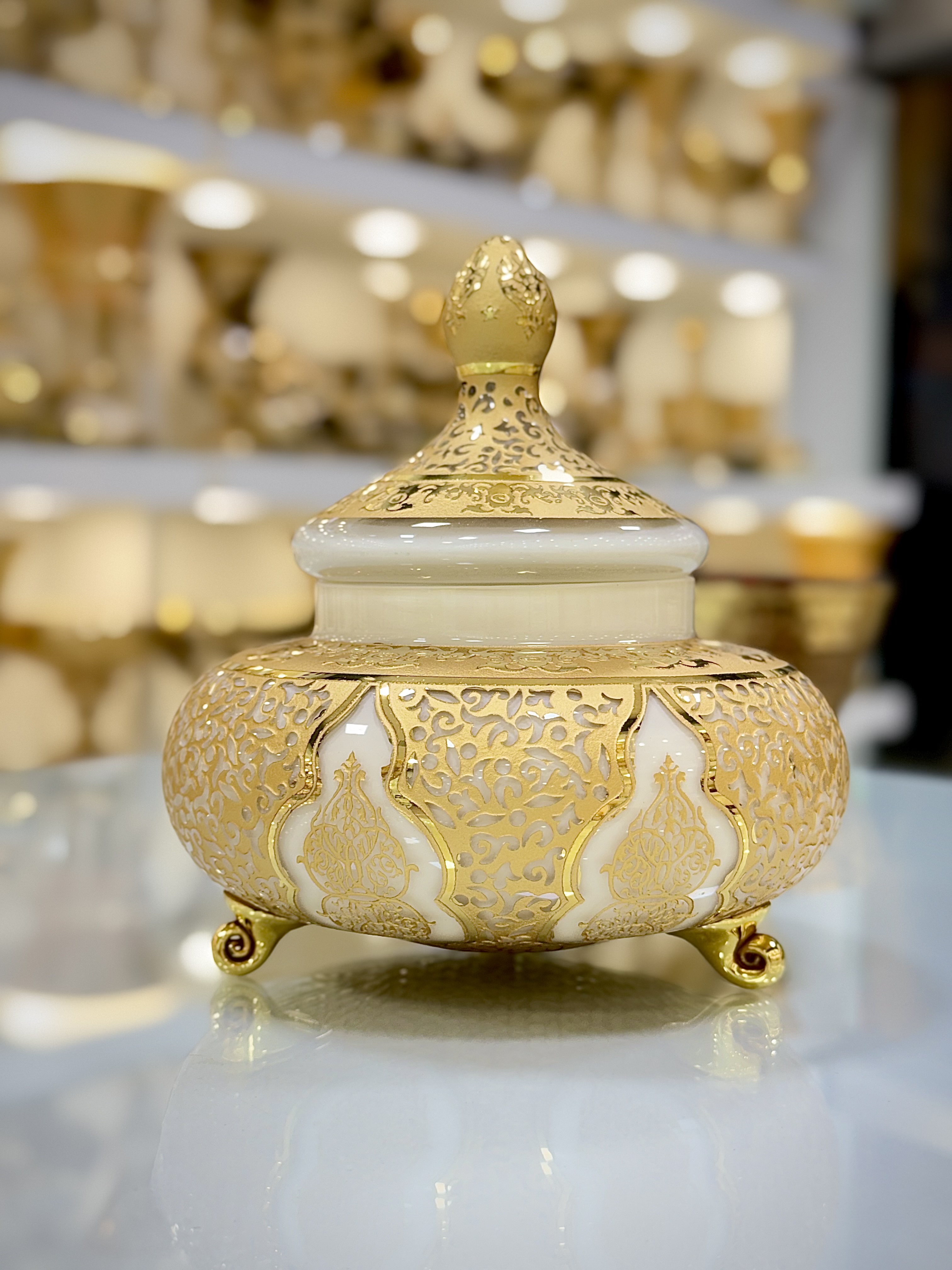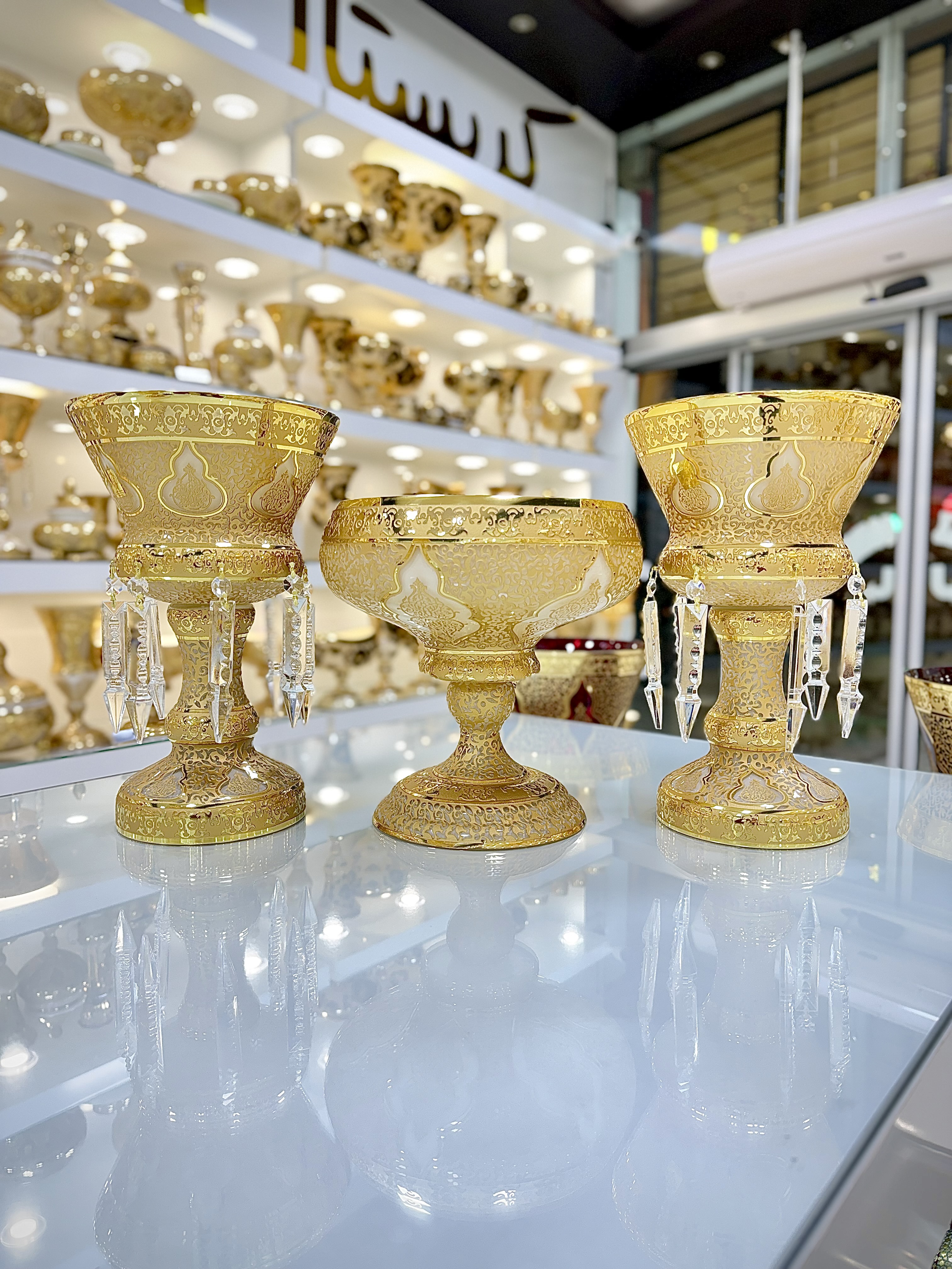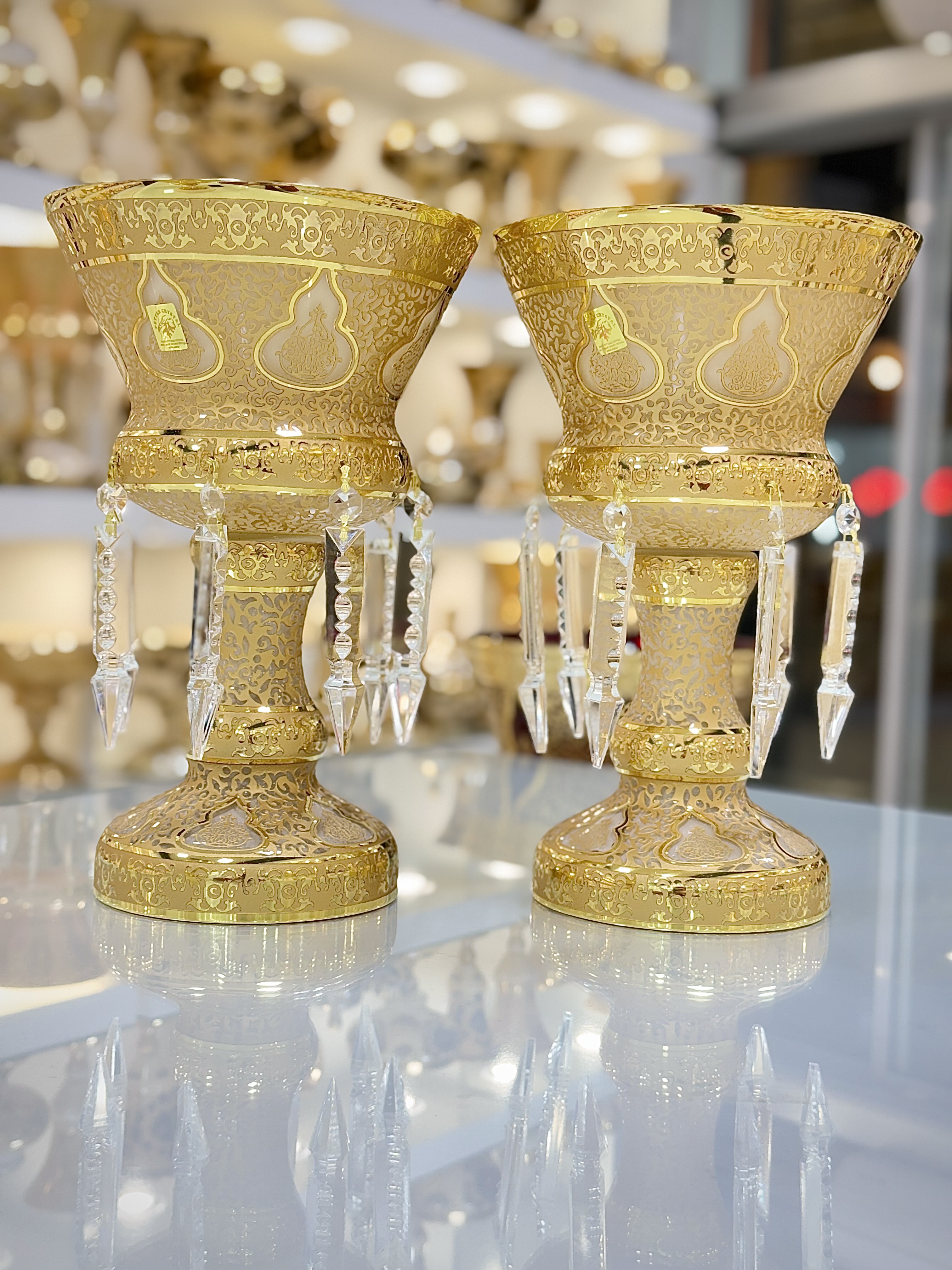 مجموعهی فاخر کریستال طرح کاستل کرم از برند معتبر پیتر کریستال، با درخشش طلاکوب و رنگ کرم اصیل، جلوهای اشرافی به هر محیط میبخشد. طراحی هماهنگ میان خطوط آب طلا و زمینهی کرم درخشان، این مجموعه را به یکی از محبوبترین گزینهها برای دوستداران دکوراسیون کلاسیک و مجلل تبدیل کرده است.