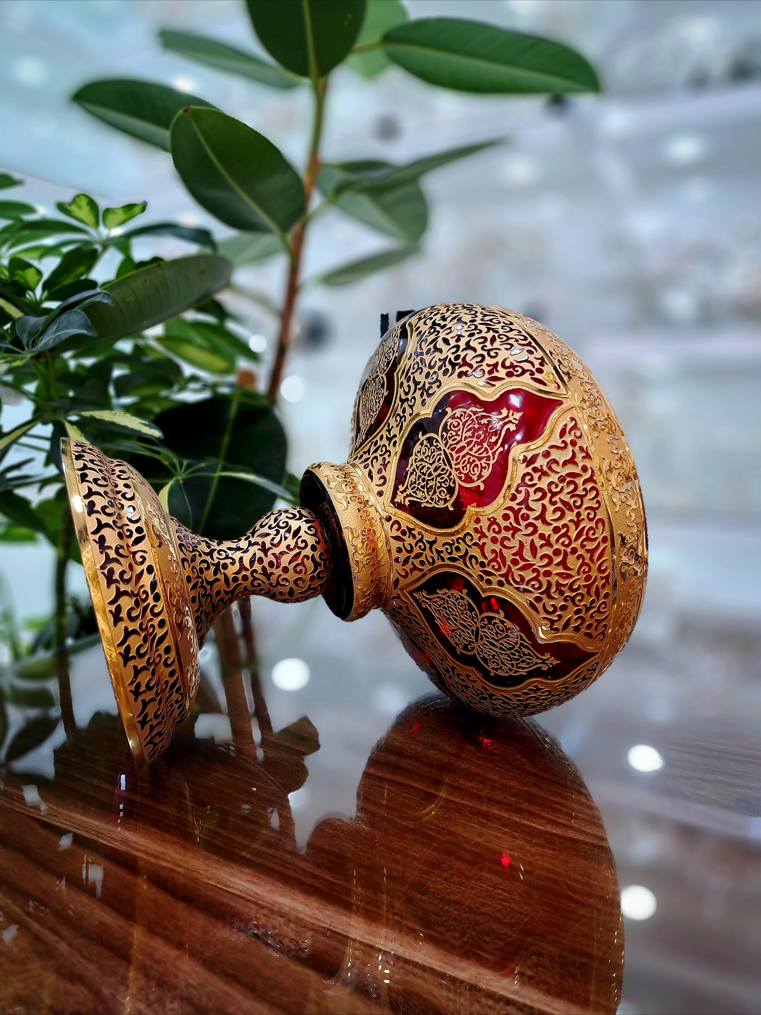 کاسه آجیل کریستال طلاکوب طرح کاستل رنگ قرمز با طلاکاری هلند