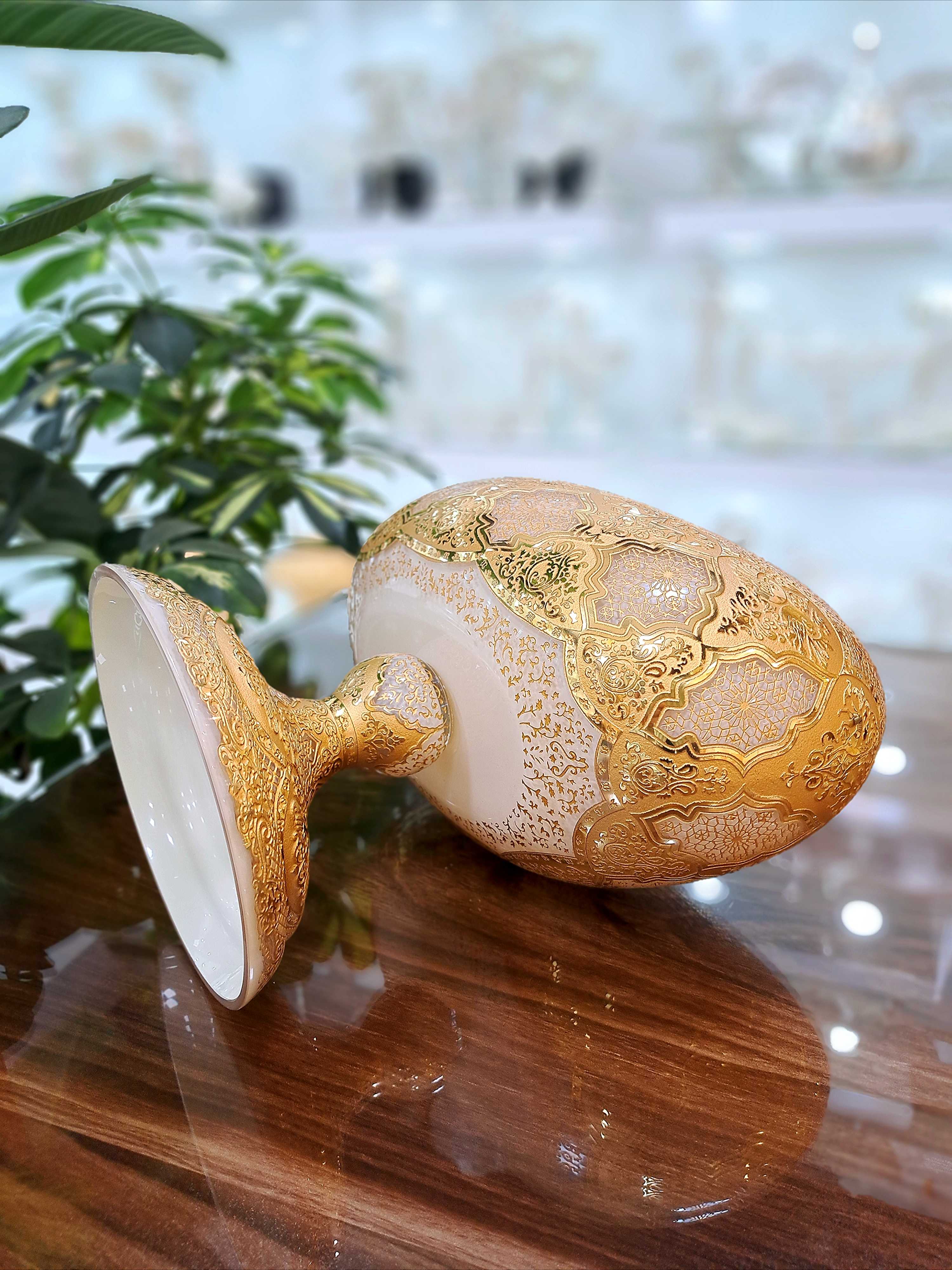 روی محصول از آب طلای 12 عیار اصل هلند استفاده شده است که طلاکاری زیبای روی محصول هنر دست میباشد.