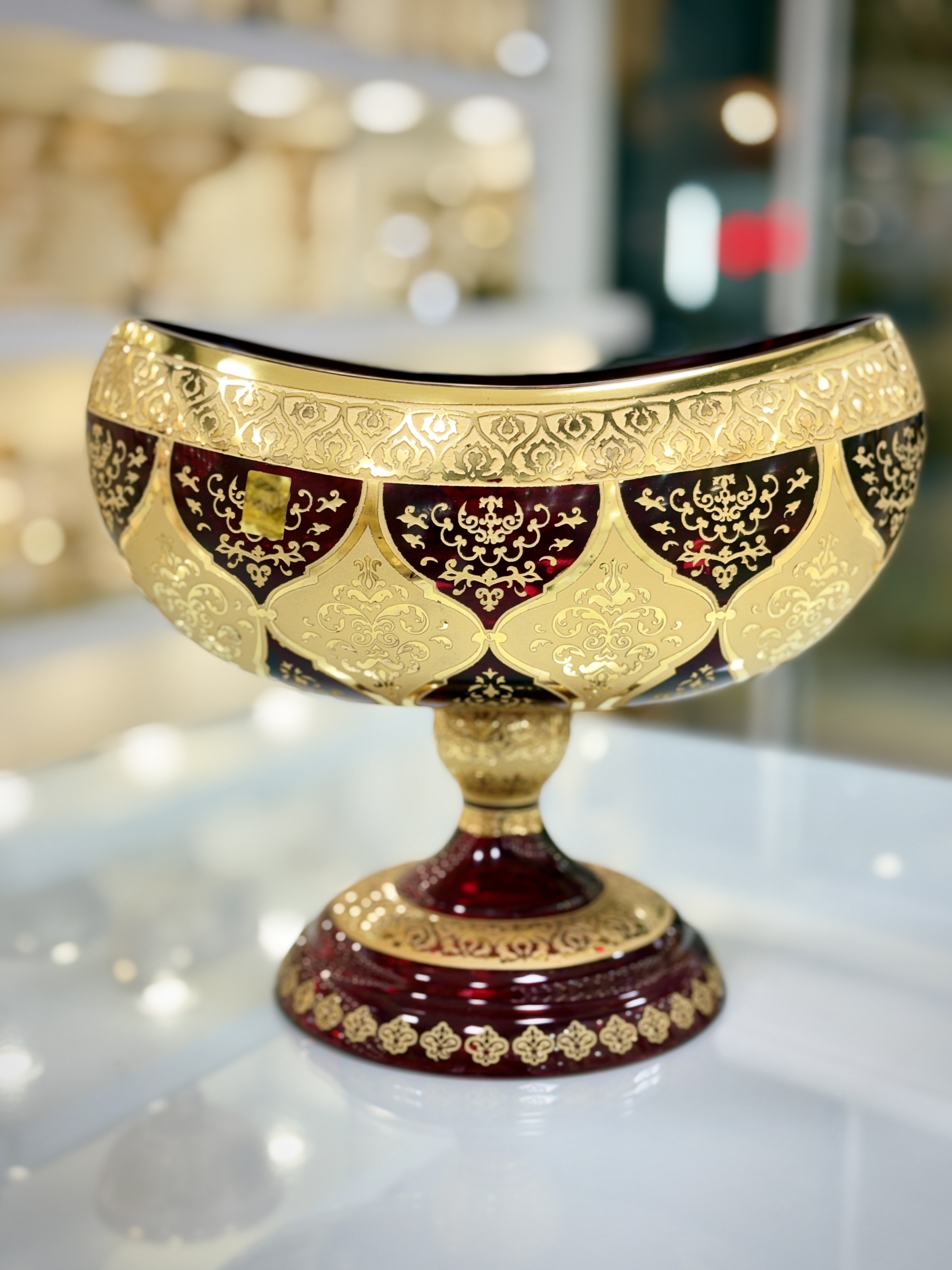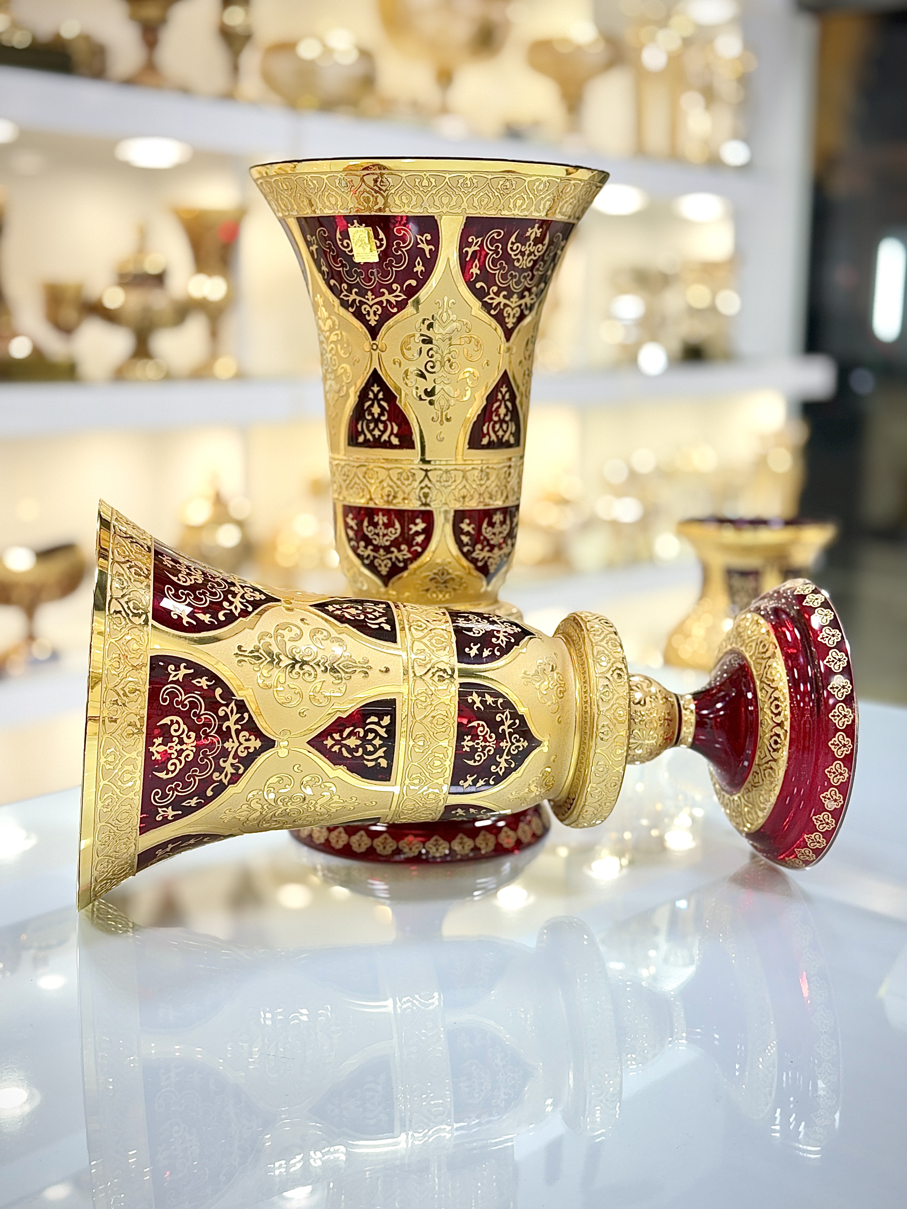 از آنجایی که خلق این آثار هنری از صفر تا صد : از تولید ظرف و طلاکاری گرفته تا تراش های بینظیر و شاهکار روی محصول و... هنر دست اساتید متبحر و مجرب میباشد هرقطعه از این کریستال فضای شما را به یک فضای لوکس و هنری تبدیل میکند.