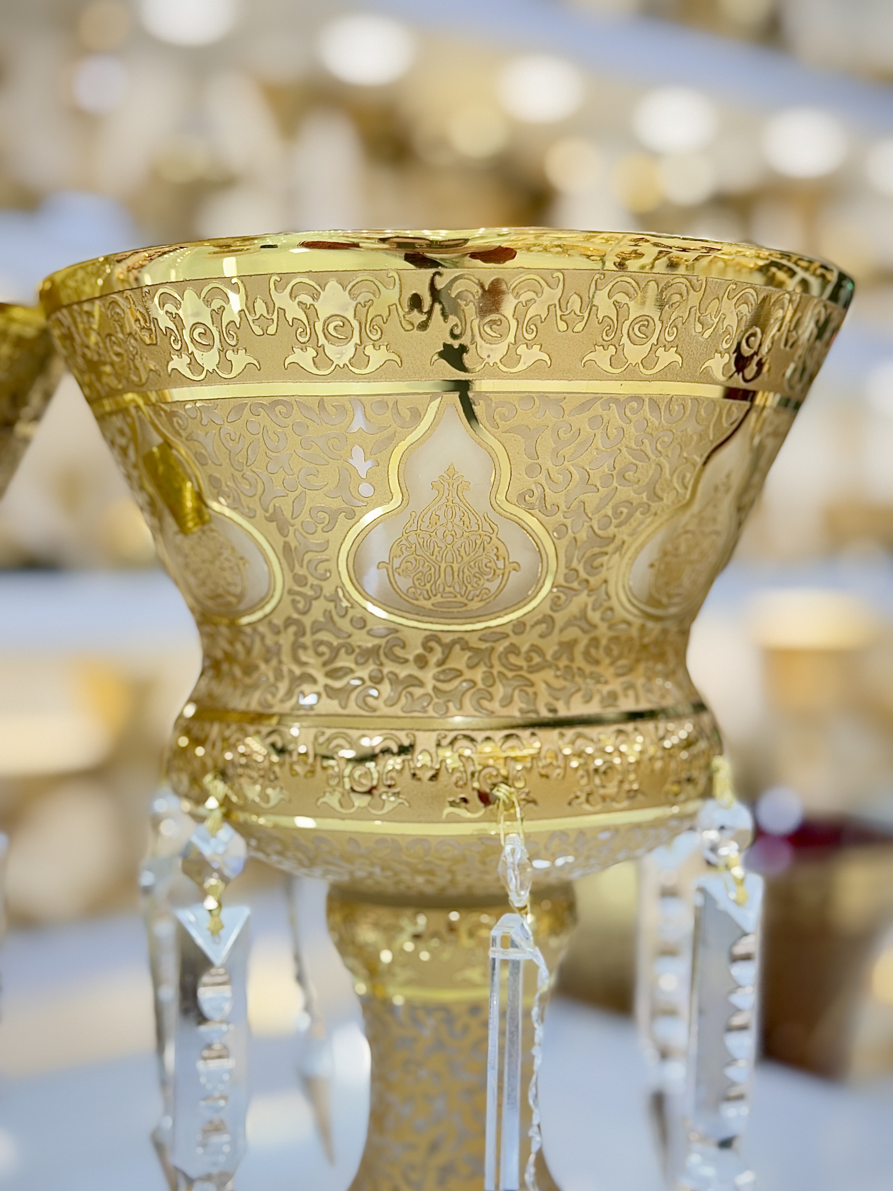 این اثر هنری از کریستال 24 درصد خالص ساخته شده و با آب طلای 12 عیار هلندی و یک دیزاین بینظیر اروپایی به زیبایی تزیین شده است.
