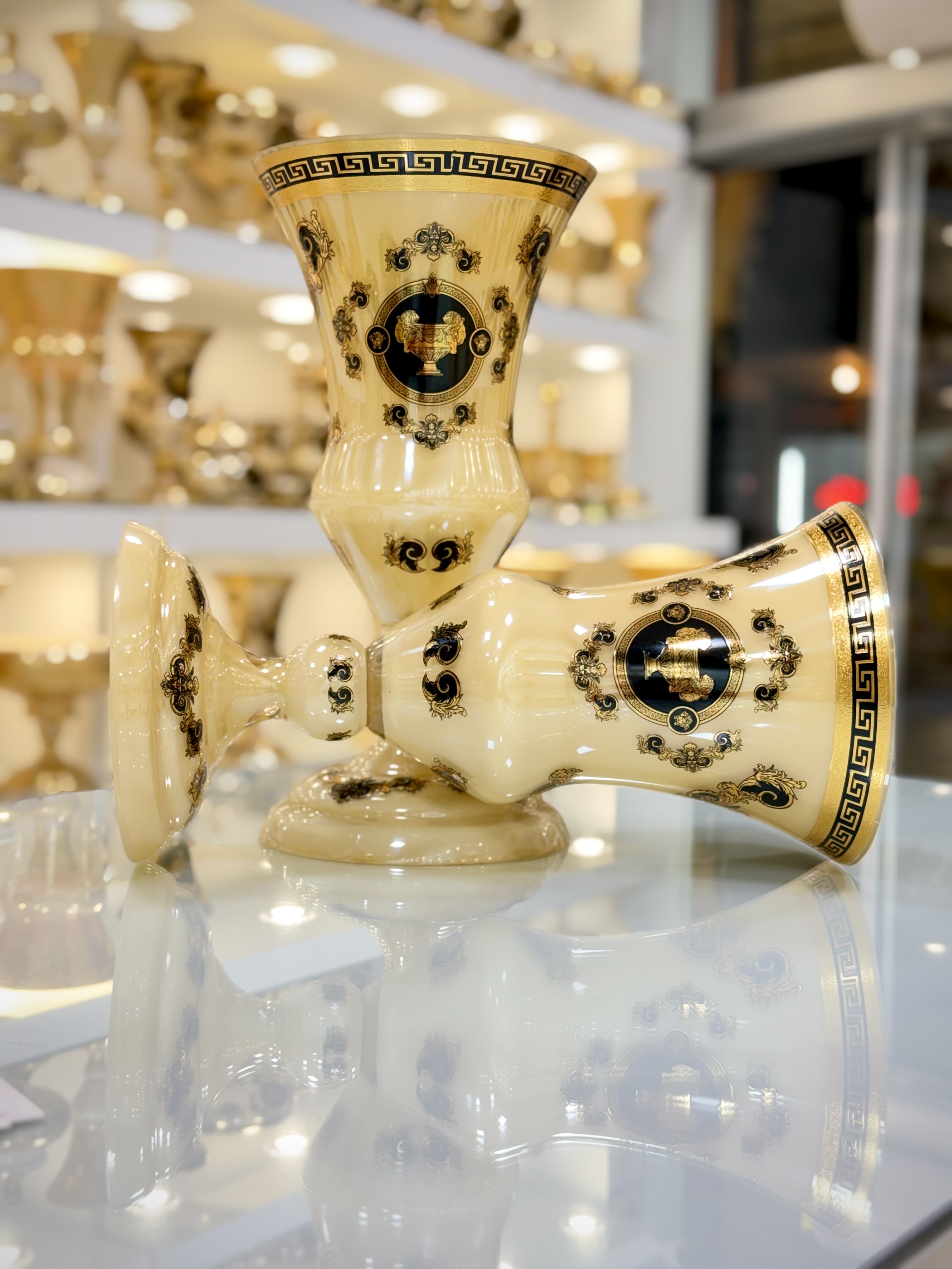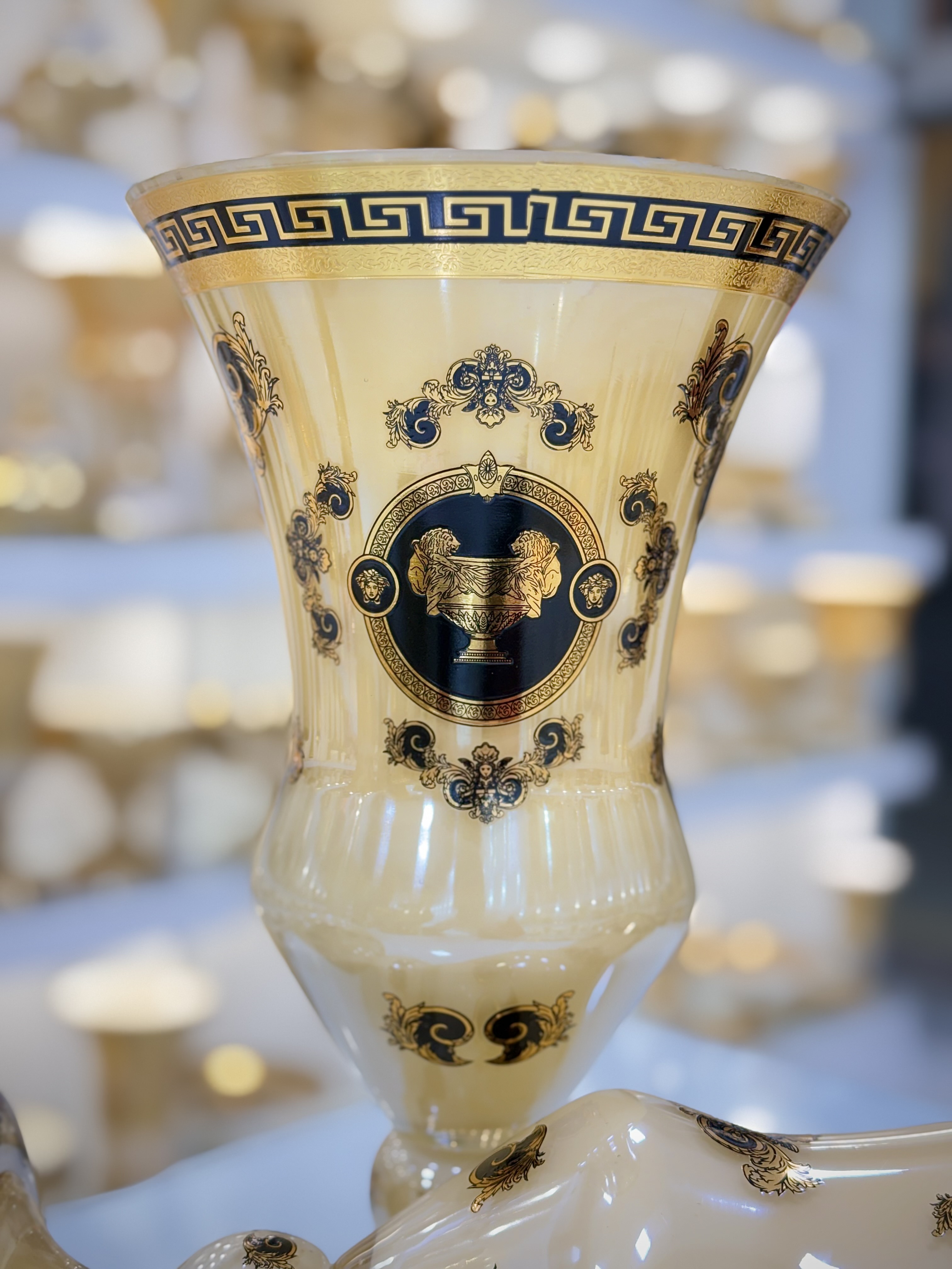 گلدان کریستال طلاکوب طرح ورساچه کاریزما مدل پوهار سایز بزرگ مجموعه دوعددی