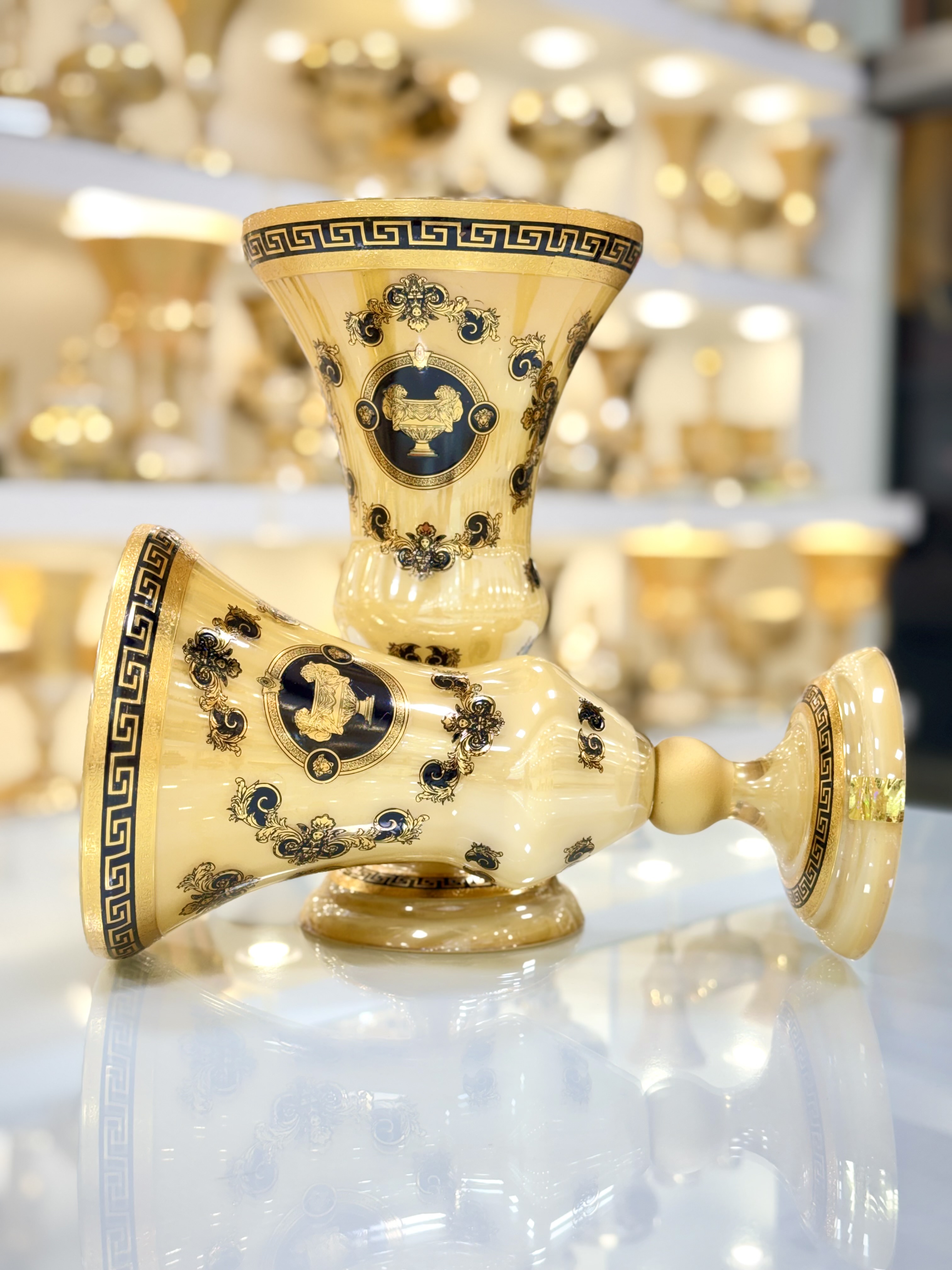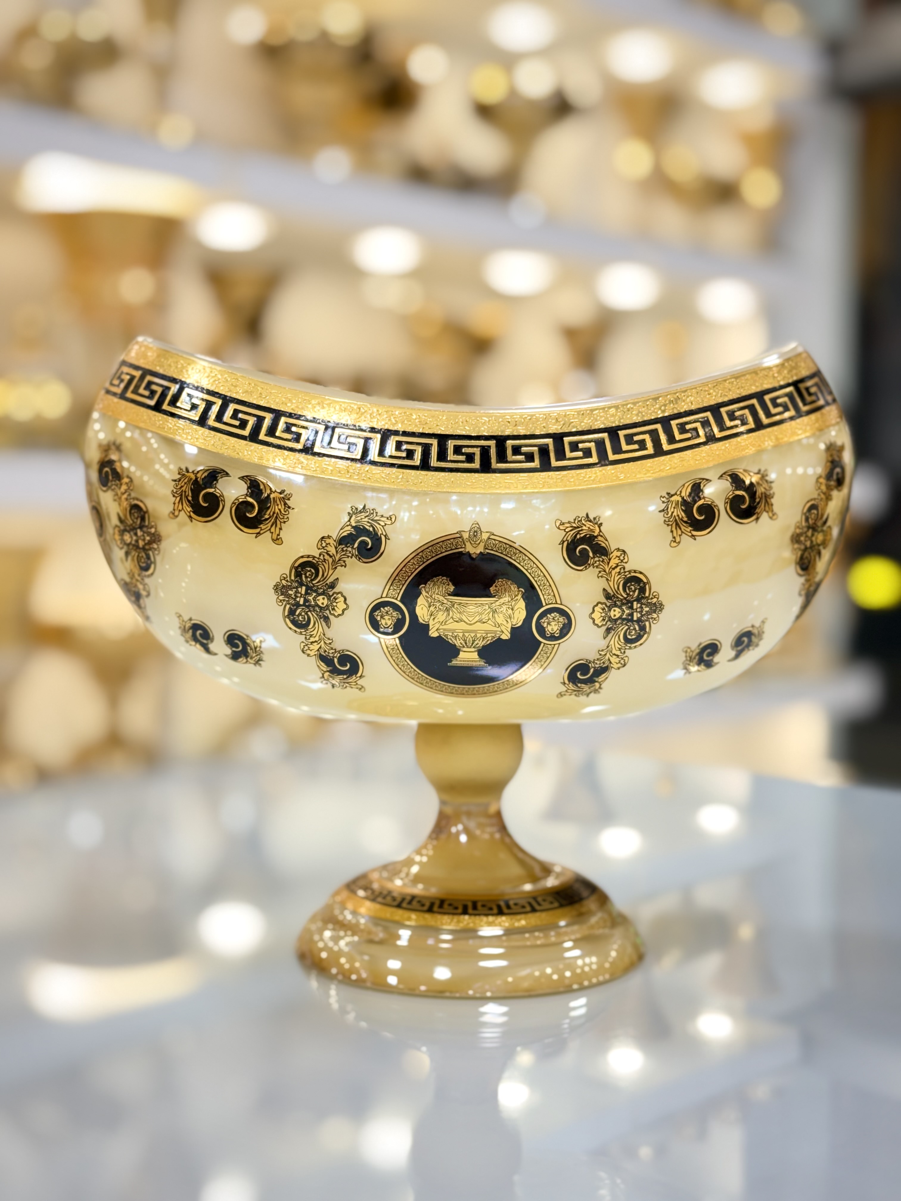 ست سه تیکه گلدان و کشکول کریستال طلاکوب طرح ورساچه کاریزما سایز1