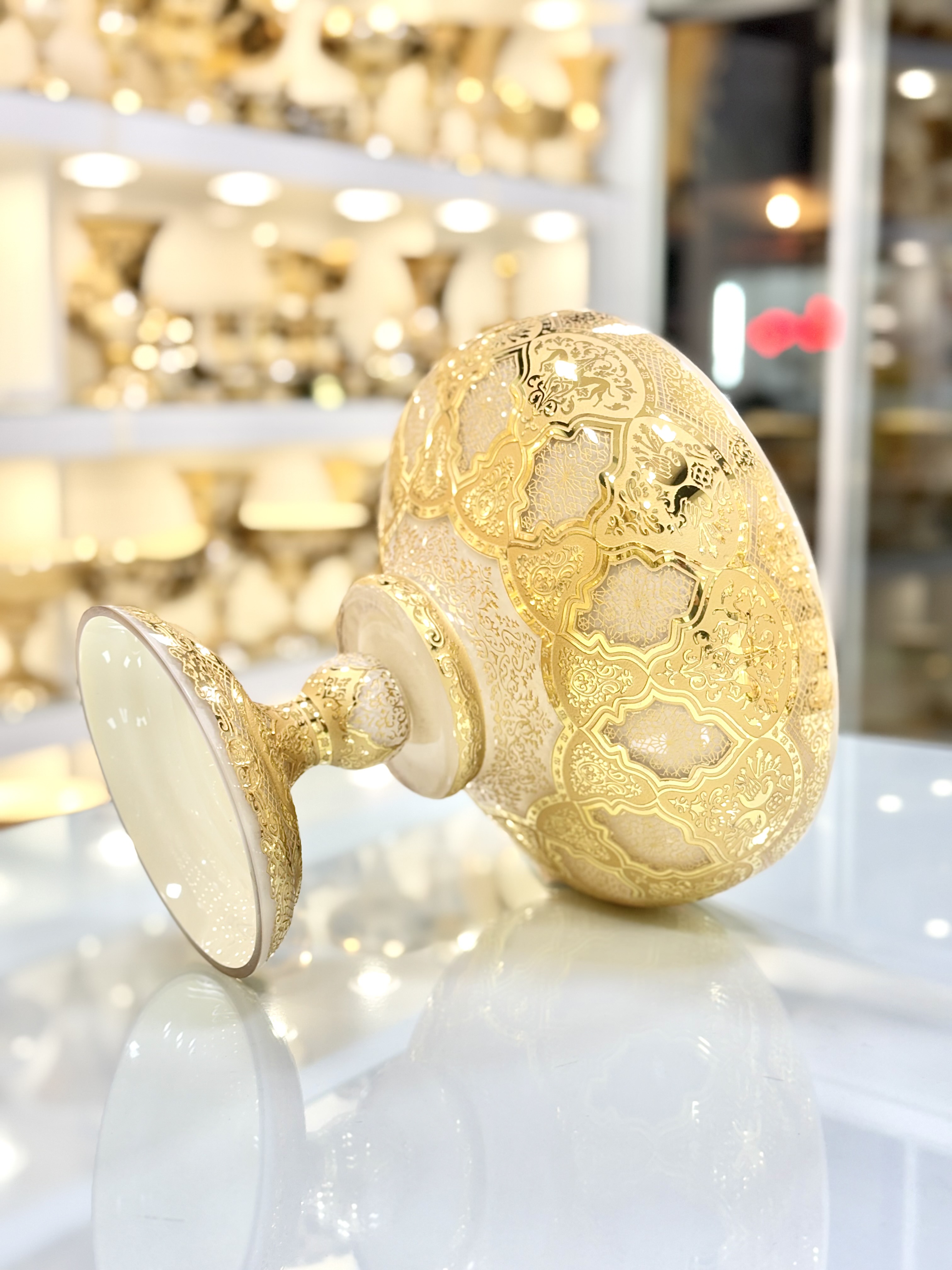 روی محصول از آب طلای 12 عیار اصل هلند استفاده شده است که طلاکاری زیبای روی محصول هنر دست میباشد.