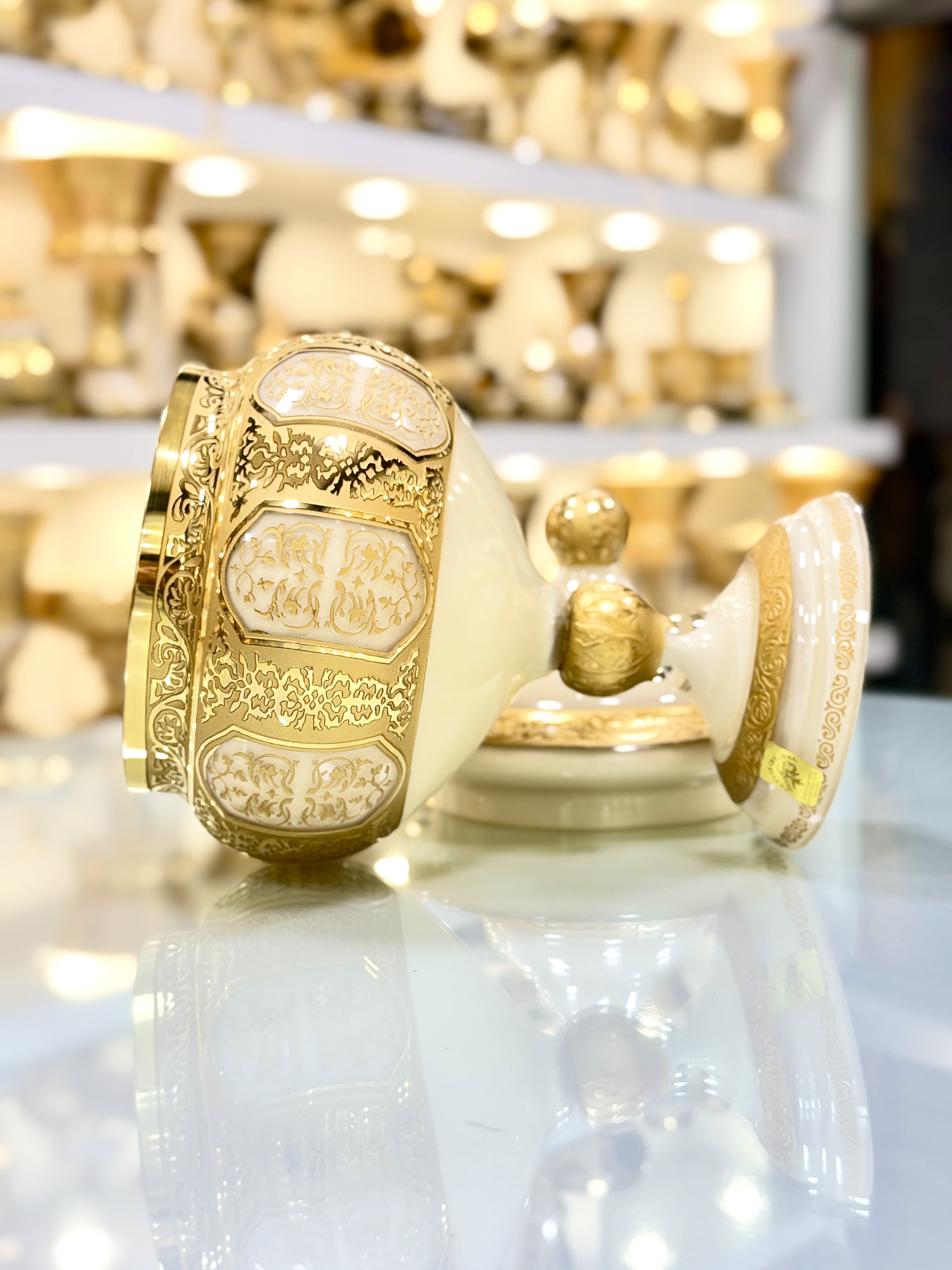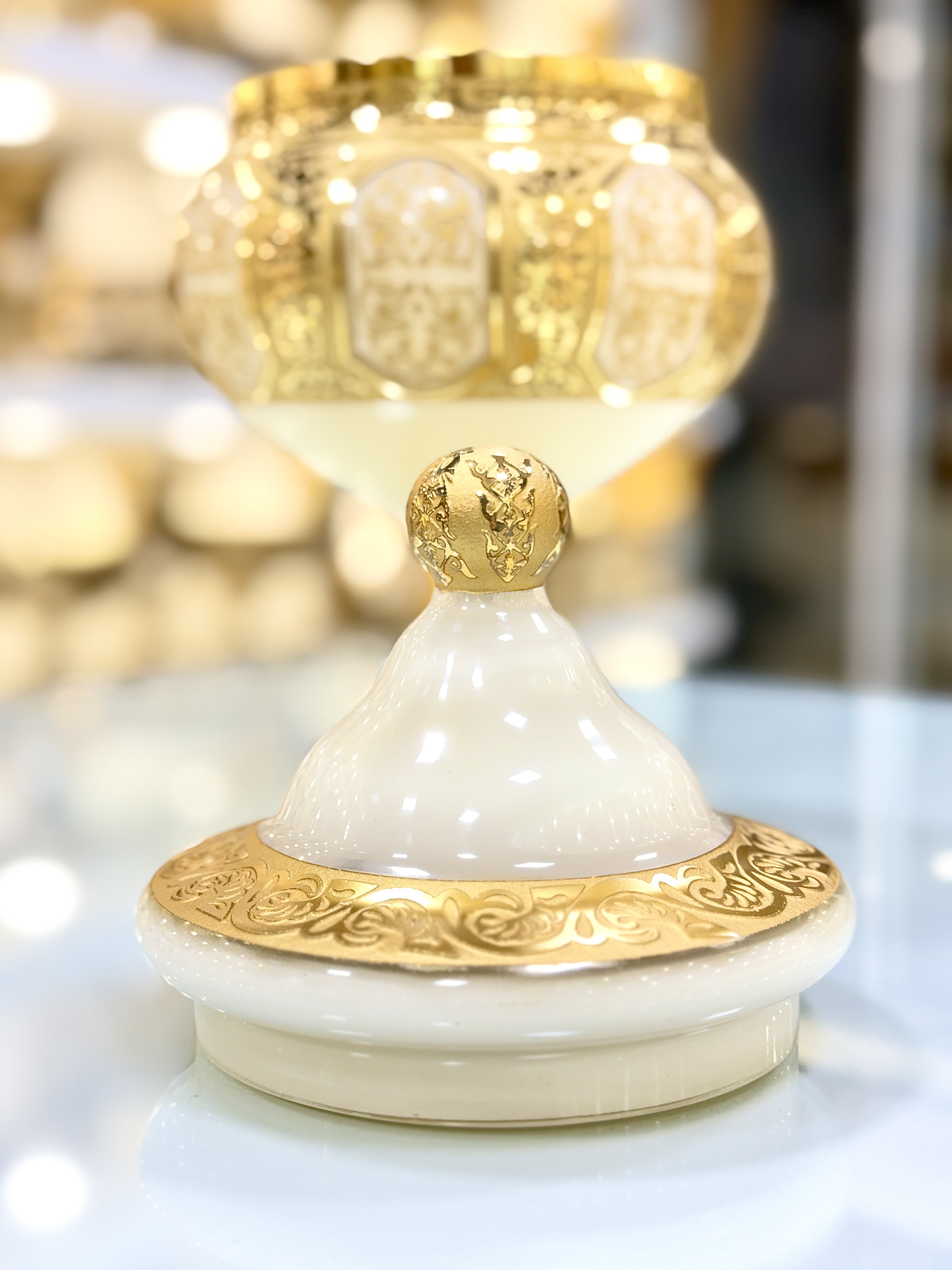 شکلات خوری کریستال طلاکوب طرح سلطان رنگ کرم با تراش های برجسته