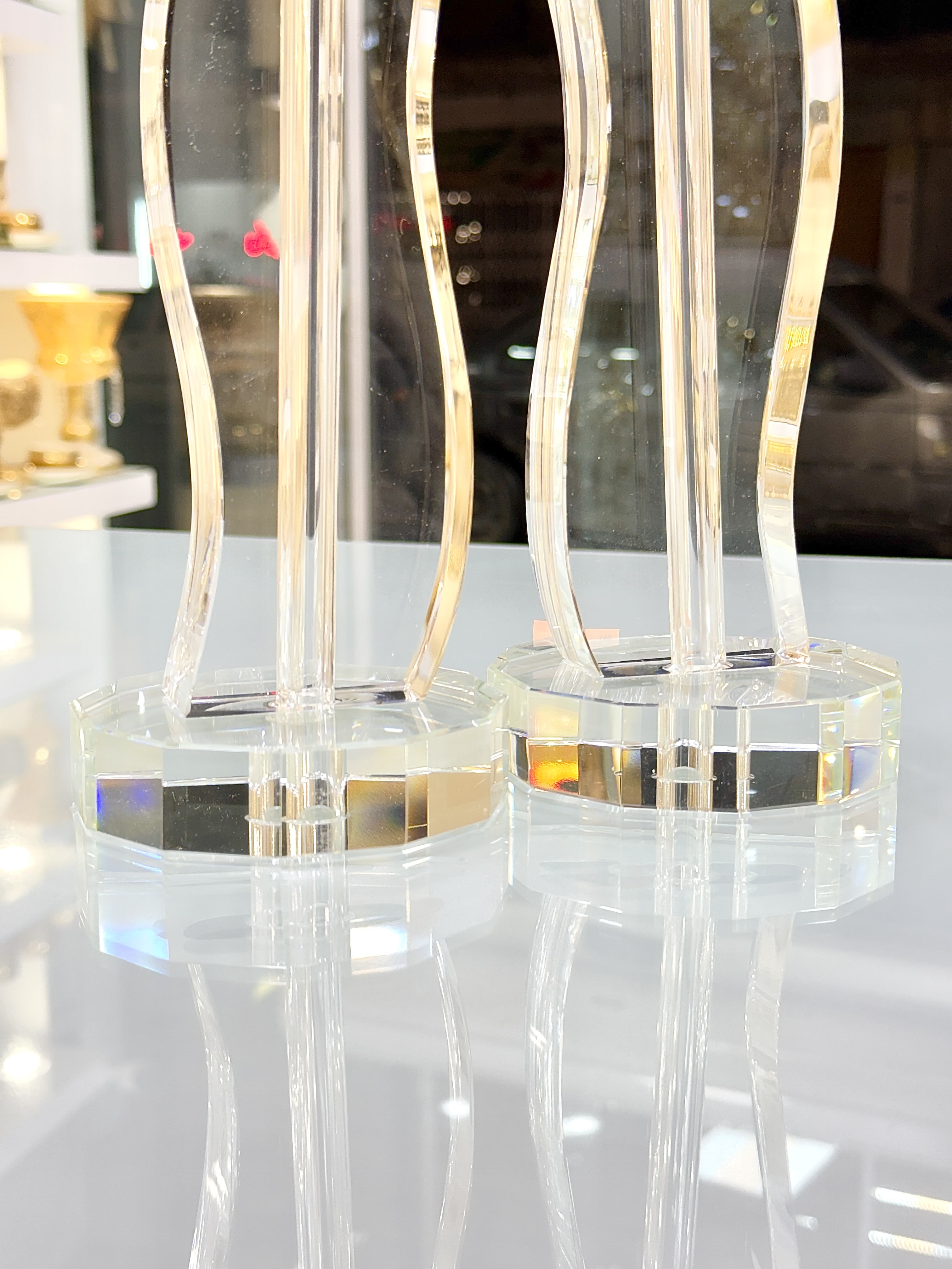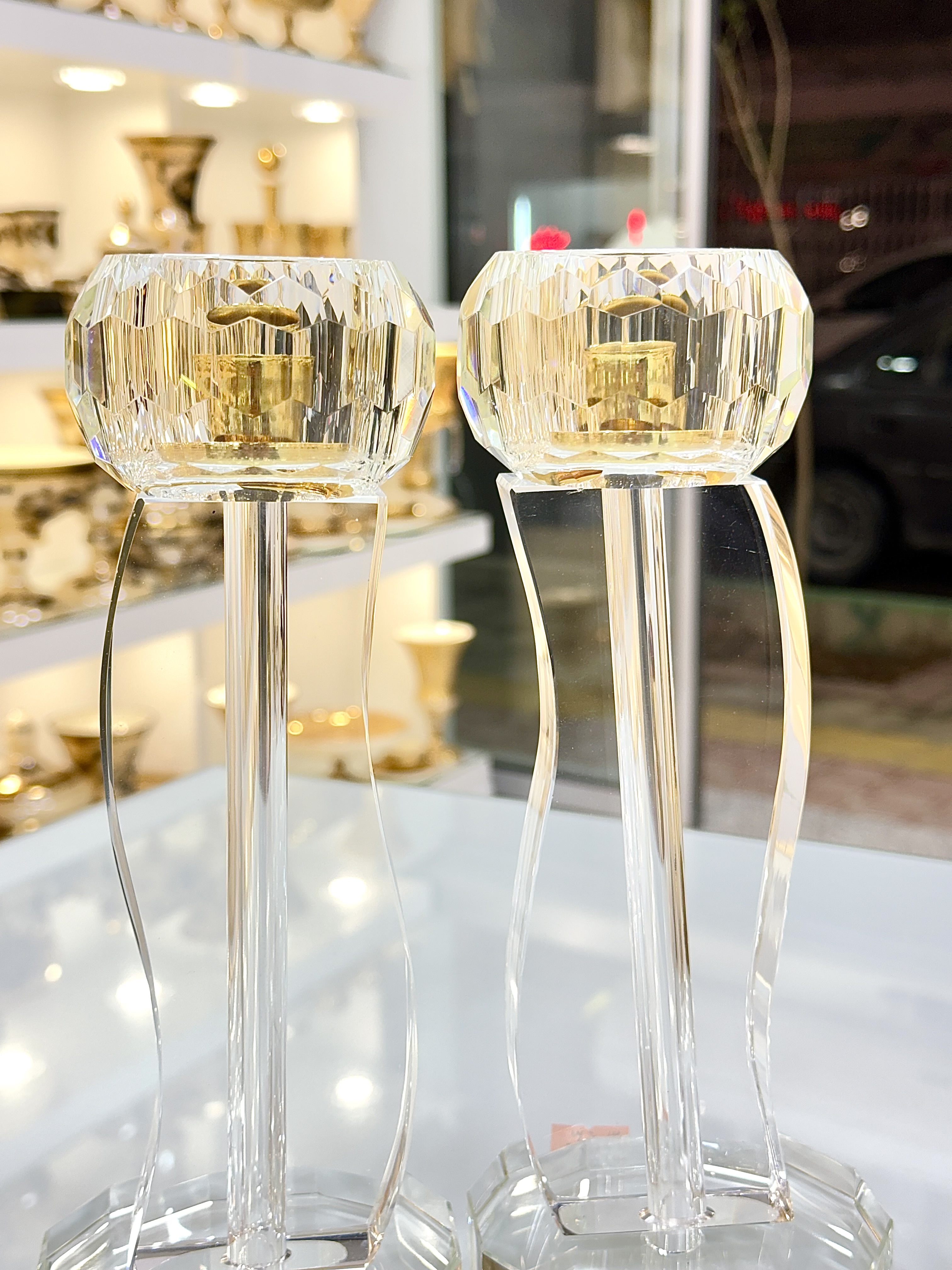 کریستالهای بوهمیا با دقت بالا و ترکیب شیشه خالص و مواد معدنی ویژه تولید میشوند تا درخششی متمایز، شکست نور خیرهکننده و وضوح بینظیری را بهنمایش بگذارند. طراحی ظریف و هندسی این شمعدان، جلوهای لوکس و چشمنواز دارد که در هر فضایی حس شکوه، اصالت و ظرافت اروپایی را تداعی میکند.