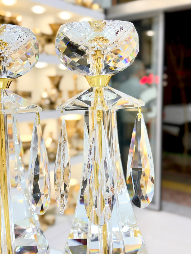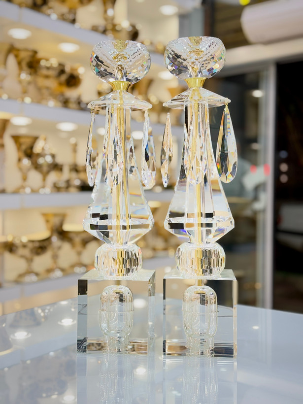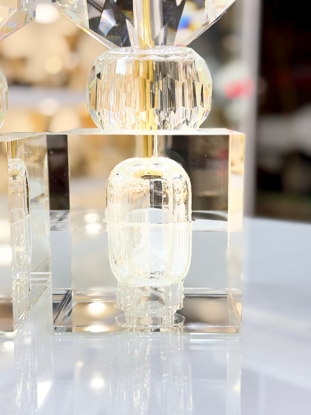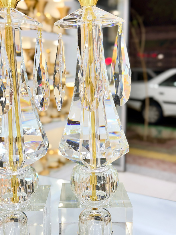 ارتفاع ۴۸ سانتیمتری این شمعدان، آن را به یک اثر هنری برجسته و نقطه کانونی قدرتمند در هر دکوراسیونی تبدیل میکند. تراشهای دقیق و درخشان روی کریستال، نور را به شکلی مسحورکننده بازتاب داده و فضایی سرشار از گرما، لوکس بودن و وقار میآفرینند. این شمعدان نه تنها یک وسیله روشنایی، بلکه یک عنصر تزئینی قدرتمند است که میتواند زیبایی هر میز، شومینه یا ورودی را دوچندان کند.