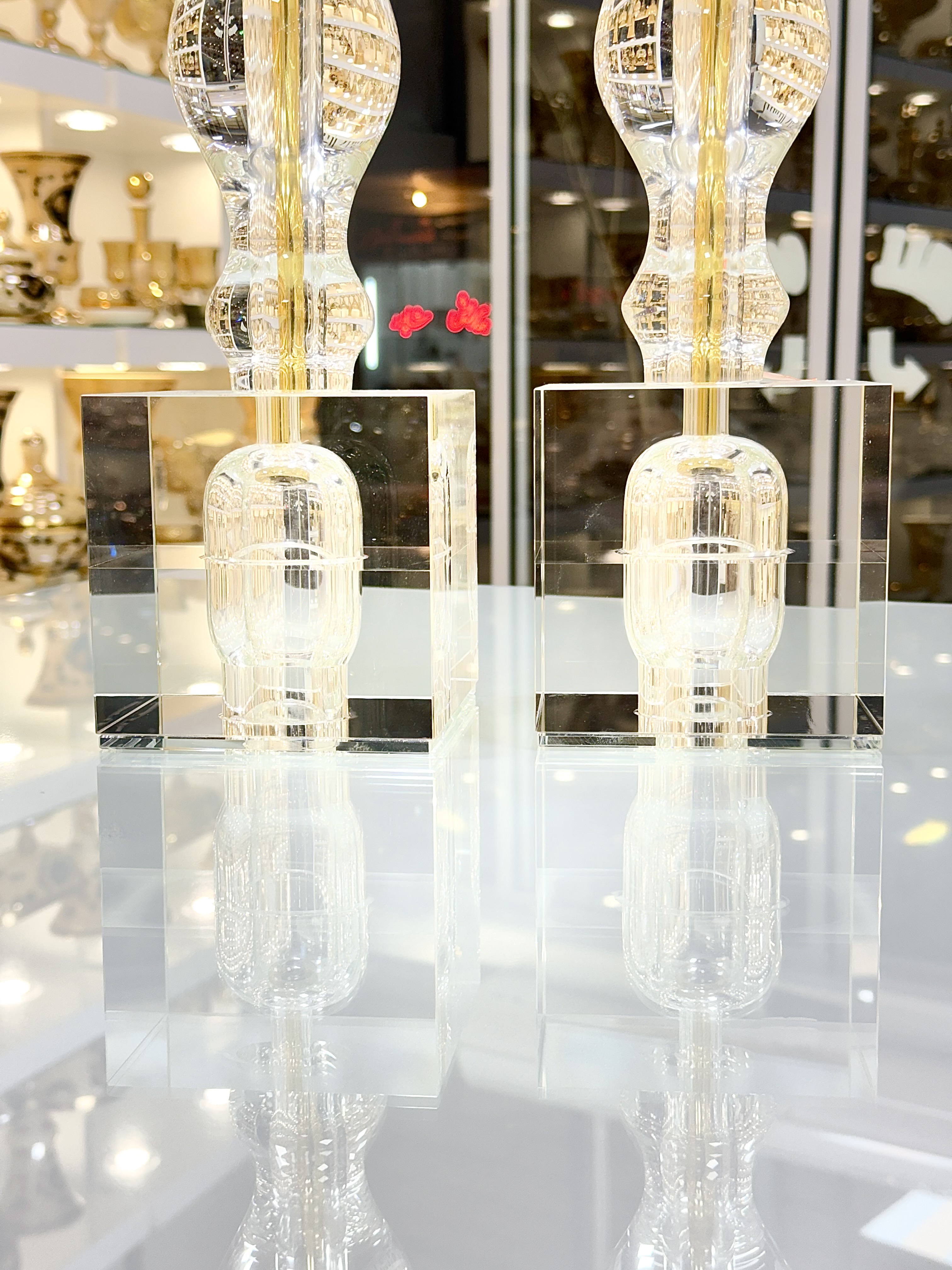 ویژگی خاص دیگر این مدل، پایههای مکعب کریستال است؛ پایههایی که بهصورت یک ساختار هندسی صُلب و مدرن طراحی شدهاند. مکعبهای کریستالی با لبههای شفاف و تراشخورده، نور را به صورت کاملاً منظم و چندوجهی بازتاب میدهند و ثبات، وقار و استحکام بصری جذابی به شمعدان میدهند. این ترکیب میان سر صدفی نرم و پایههای مکعبی منظم، تعادلی خلاقانه میان هنر کلاسیک و طراحی مدرن ایجاد کرده است.