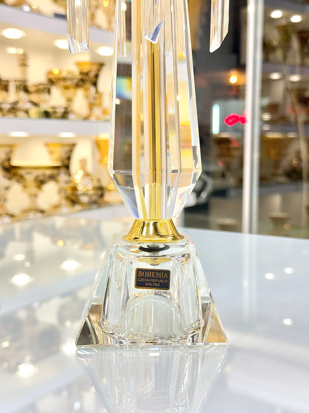 شمعدان کریستال ۴۰ سانتیمتری بوهمیا چک، تلفیقی از اصالت اروپایی و طراحی مینیمال مدرن است؛ محصولی ساختهشده از کریستال شفاف و باکیفیت بوهمیا، میراثدار هنر چندصدساله کریستال گری در جمهوری چک. طراحی این مدل با سر و پایه مکعب ساده (بدون تراش)، جلوهای کاملاً تمیز، شیک و امروزی ایجاد میکند؛ بهگونهای که تمرکز نگاه را به درخشش طبیعی و خلوص کریستال هدایت میکند.
