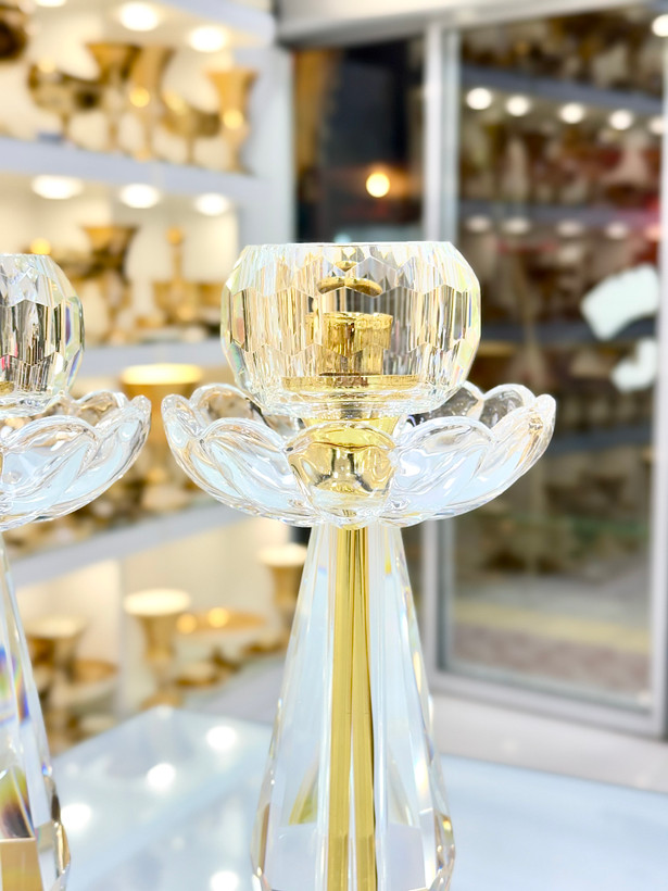شمعدان کریستال بوهمیا مدل لاله سایز بزرگ مجموعه دوعددی کد252
