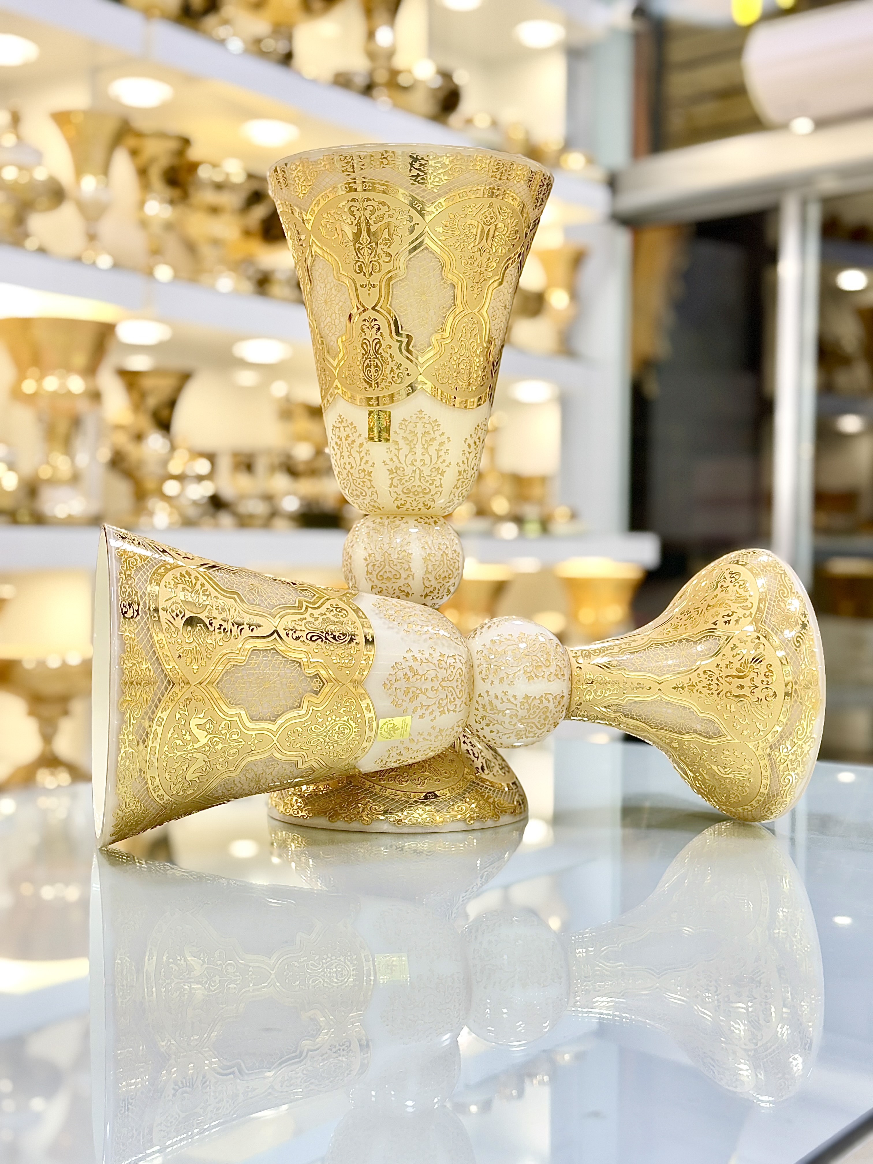 گلدان کریستال طلاکوب با طلاکاری 12 عیار هلند طرح ژاکلین کرم سایز 380 مجموعه 2 عددی